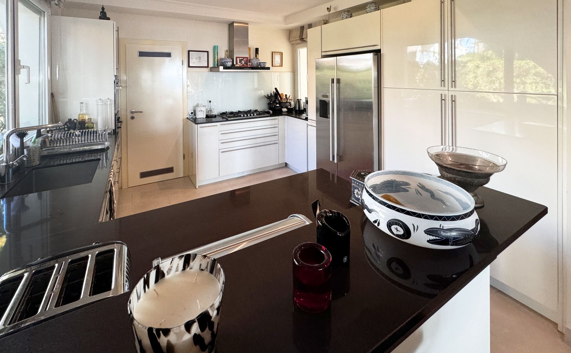 Möbliert mit Designer- Möbel von Moreno Pisano aus feinsten Materialien . Master-Bad mit Geberit Dusch-WC, Dusche und Wanne Gäste WC mit Urinal und Waschbecken Offene, ausgestattete Küche . Bodenbelag aus Stein. Klima-Anlage im gesamten Haus. Kamin im Wohnbereich. Terrassen, Sauna und Gym . Swimmingpool . 4 Stellplätze, davon 2 in der Garage und Stellplätze im Freien. Aufteilung: 4 Schlafzimmer 1 Büro 6 Bäder 2 Ankleide 1 Gäste WC 40 qm Pool